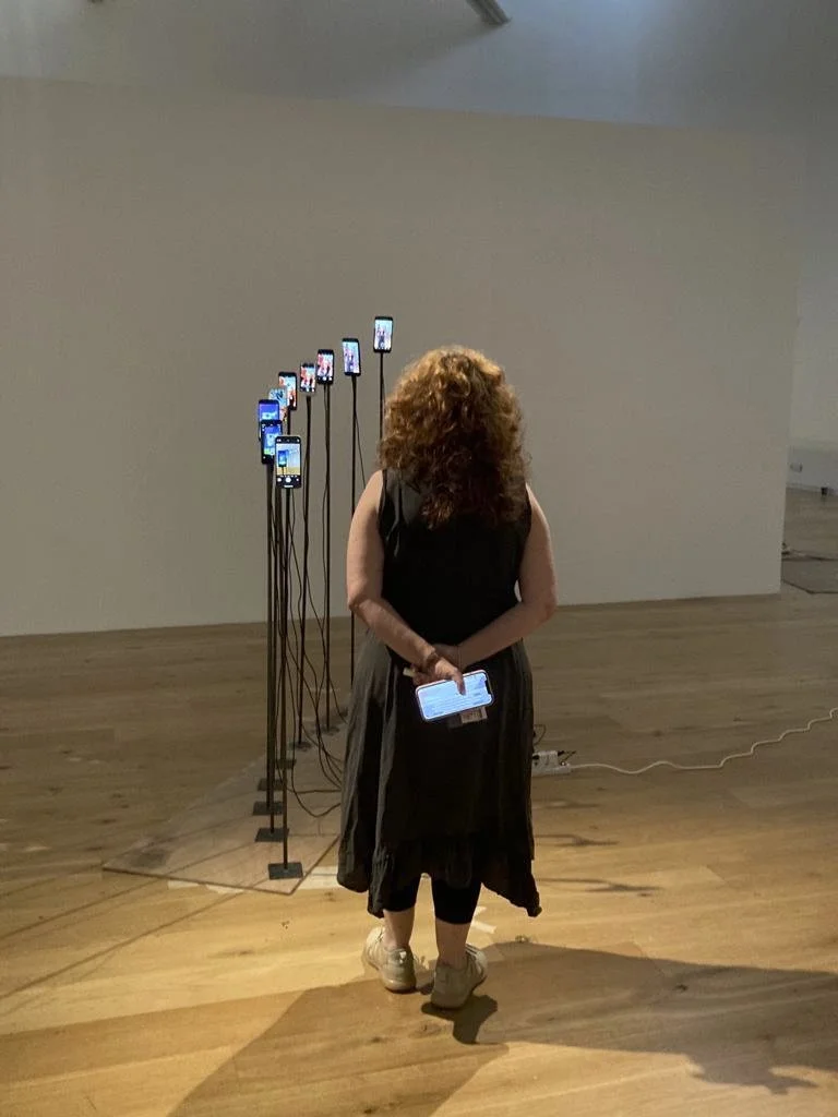 Interactive Video Installation, 9 phones shooting one another and the viewer, AR face filters, 2023